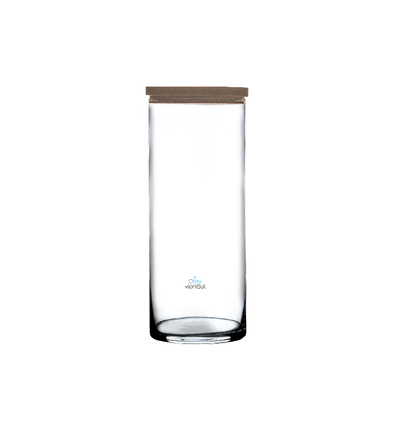 -Ref.: Florero–Cilindro 20×10 cm- Con Tapa Corcho -Tamaño: 20 x 10